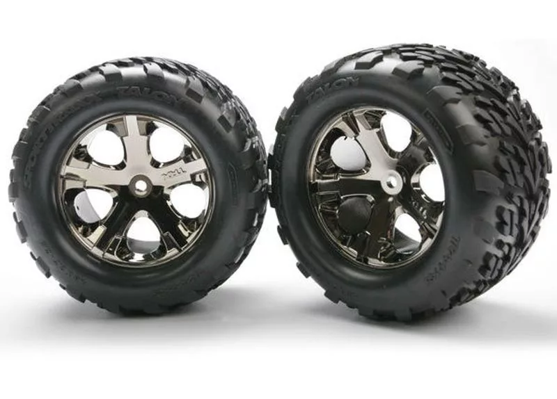 Talon gumiabroncsok 2,8"-os felniken, fekete-króm, hátul (2 db) TRAXXAS Stampede 2WD és VXL, Bigfoot (TSM besorolású)