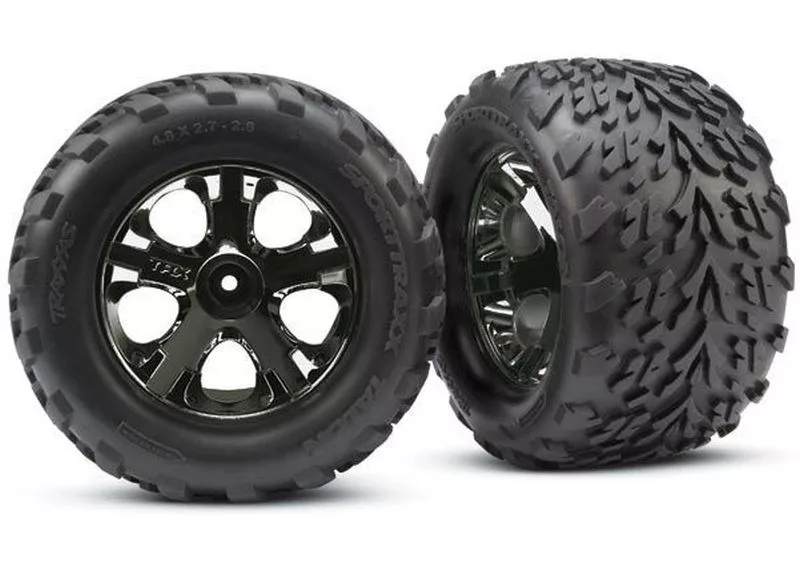Talon gumiabroncsok 2,8"-os felniken, fekete-króm, elöl (2) TRAXXAS Stampede 2WD és 4x4 és VXL, Hoss, Bigfoot